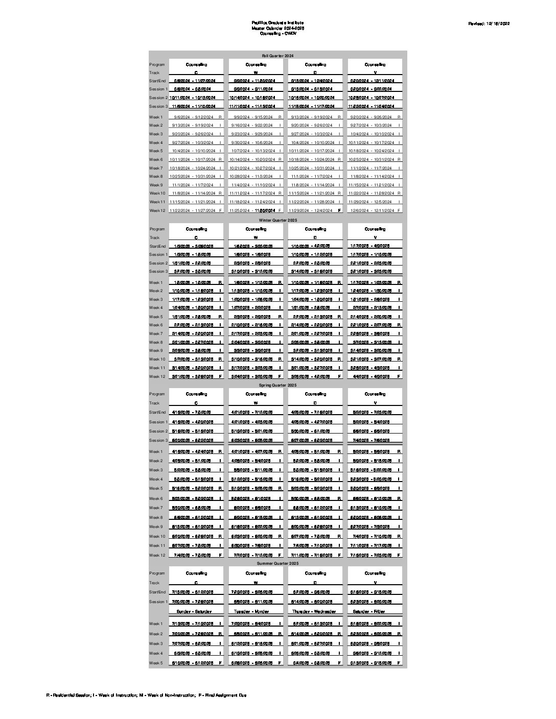 2024 25 MA Counseling Calendar Pacifica Graduate Institute